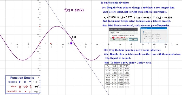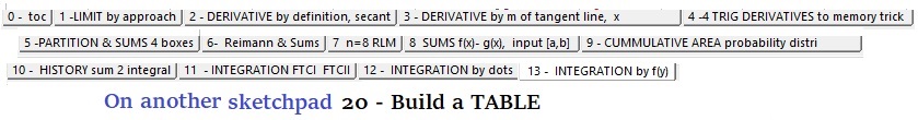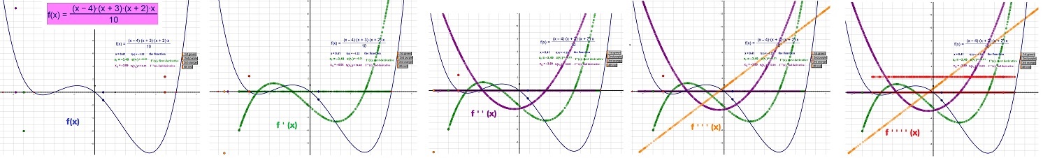 TABLE f, f(x), f '(x), f " " (x) DerAnyFx.gsp then page 5