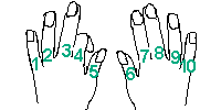 - 2nd: Bend the finger named by the number you wish to multiply.