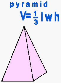 The volume of a rectangular pyramid, V(l,w, h)= lwh/3.