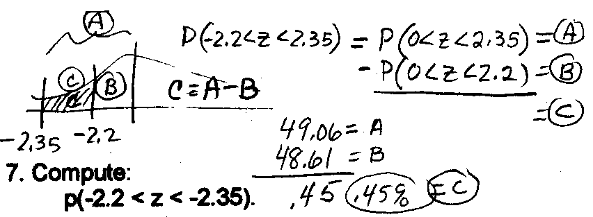 - p(-2.2 < z < -2.35). answer is .45%, work is at