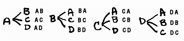 - Using members A, B, C, and D, here is a tree diagram and the sample space with 24 ways.