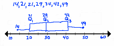 - Box plots are usually drawn to scale so the relationship between the data points is visible. Draw the number line first, then,