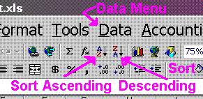 The Toolbar has two sorting buttons and a Data Menu which facilitates more sophisticated sorts.