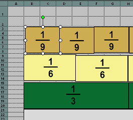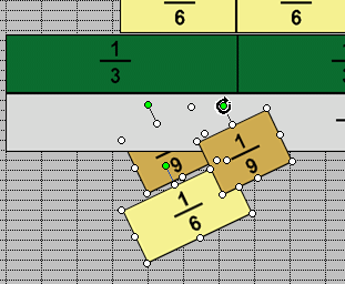 Digital manipulative are pictures on a spread sheet page. They are moved and edited by the same delete, select/copy/paste commands used to edit text and, on newer versions of Excel©, the rotate, stretch/shrink commands of a graphic editor. They permit the user to create a new picture or move and manage the pictures already created. If the user doesn't interact with the graphics, doesn't manipulate the graphics, there is no DIGITAL MANIPULATIVE. | |