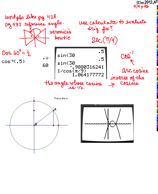 4 Veronica's bowtie, secant, arccosine, unit circle for cosine w/triangle, w/animation