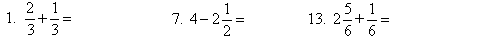 Mental Addition & Subtractions of Fractions