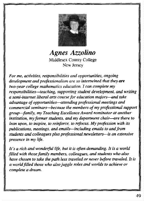 "Page 49" of Opportunities for Excellence: Professionalism and the Two-Year College Mathematics Faculty