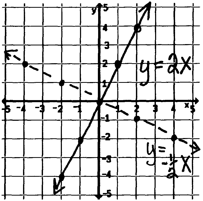 I havey= -(1/2)x. Who has the perpendicular to this containing the origin? |