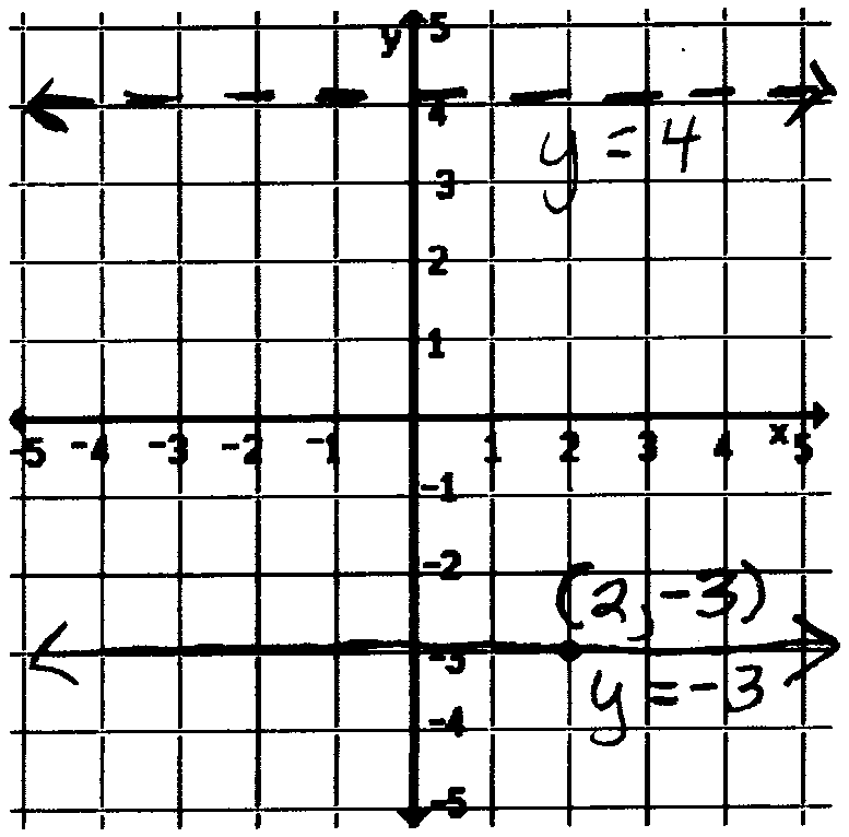 I have y= 4. Who has the line with the same slope passing through (2,-3)? |