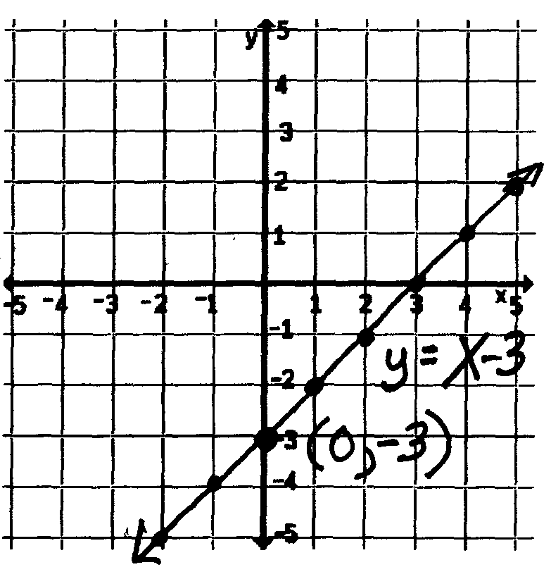 I have (0,-3), as a y-intercept. Who has this the line with this and a slope of 1? |