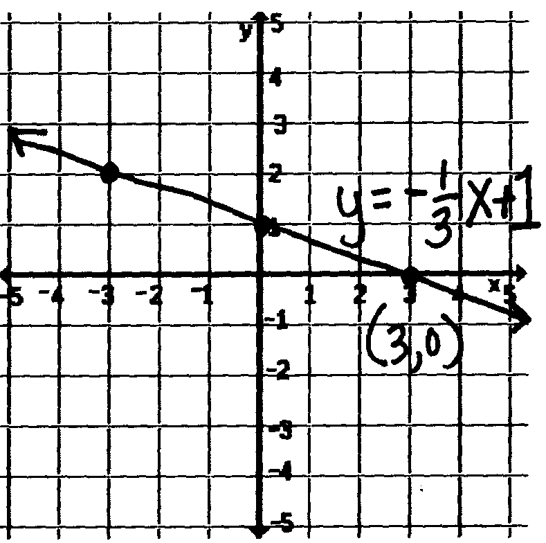 I have (3,0). Who has a line with this x-intercept and a slope of -1/3? |