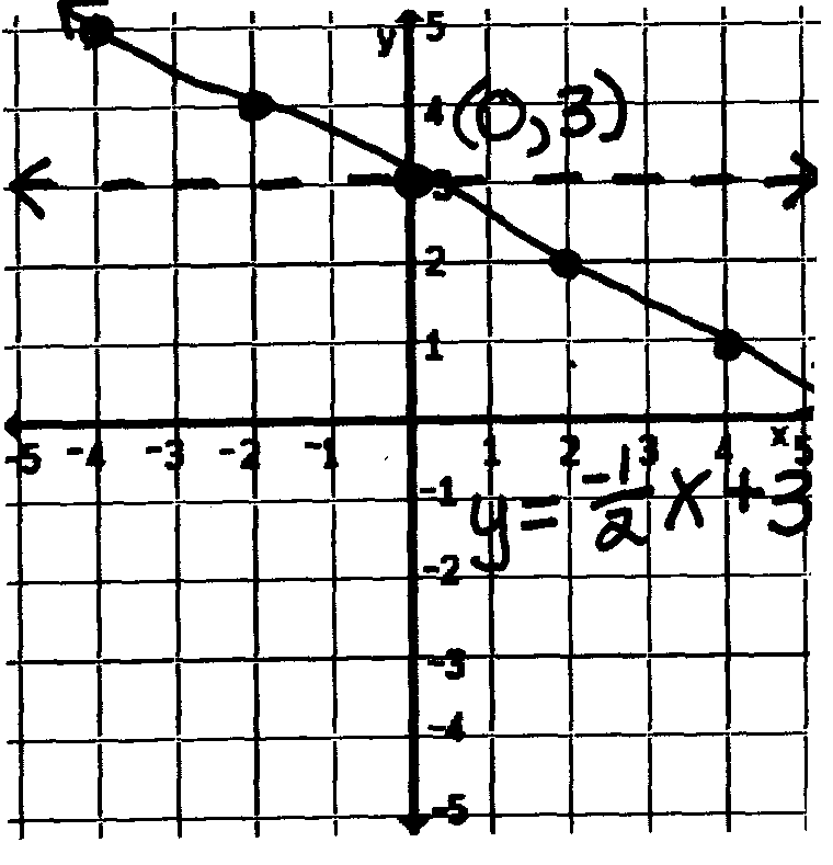 I havey= 3. Who has a line with the same y-intercept and a slope of -1/2? |