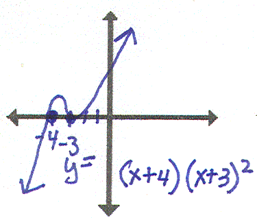 I have y=(x-2)2(x+2)2. Who has the fourth degree polynomial with a single root at x=2 and a triple root at x=-2? |