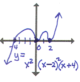 I have y=x2(x-2)2(x+4). Who has this without the roots at x=0? |