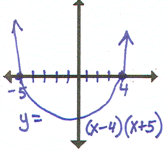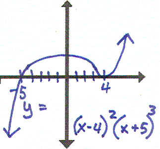 I have y=(x-4)(x+5). Who has this with the root at x=-5 removed, f(x) goes to - as x goes to -