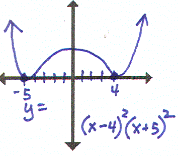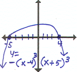 I have y=(x-4)2(x+5)2. Who has this concave up, with triple roots? |
