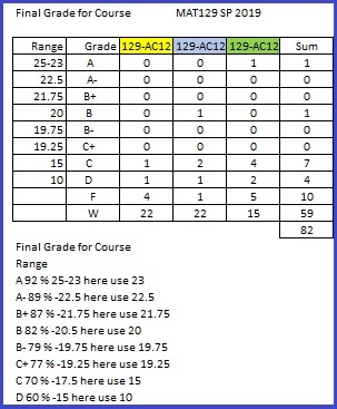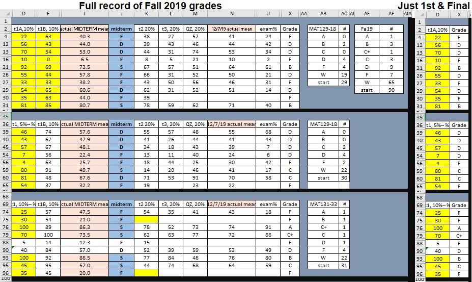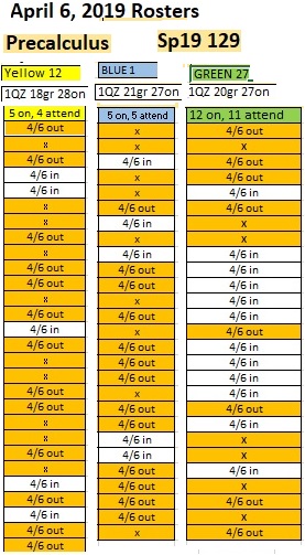 Spring 2019, Rosters After 4/4/19 Last Day to Drop Day All Three Classes