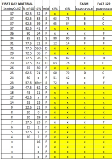 - Only 30% of those enrolled on the first day, took the final exam. Only 20% of first day enrollees passed
