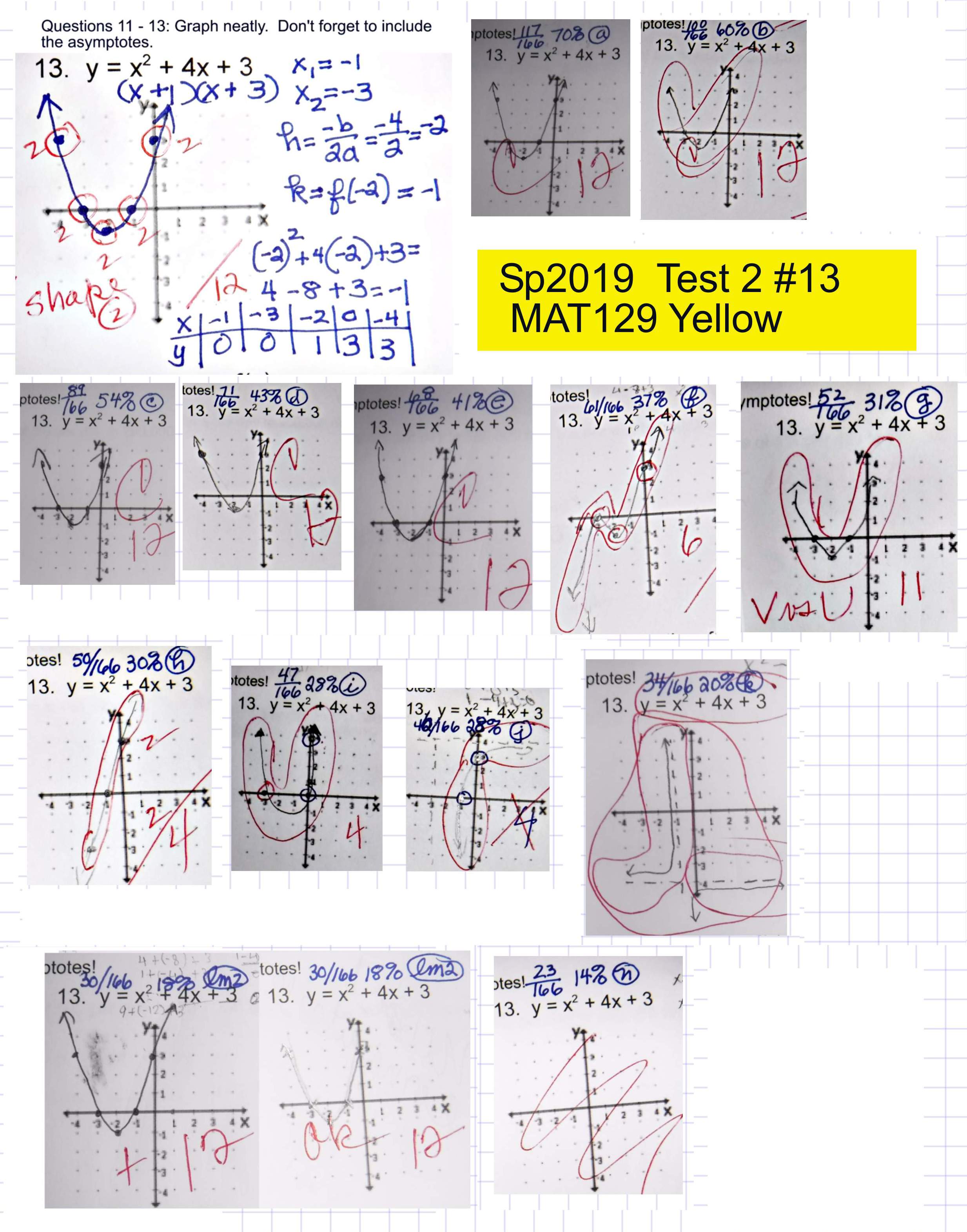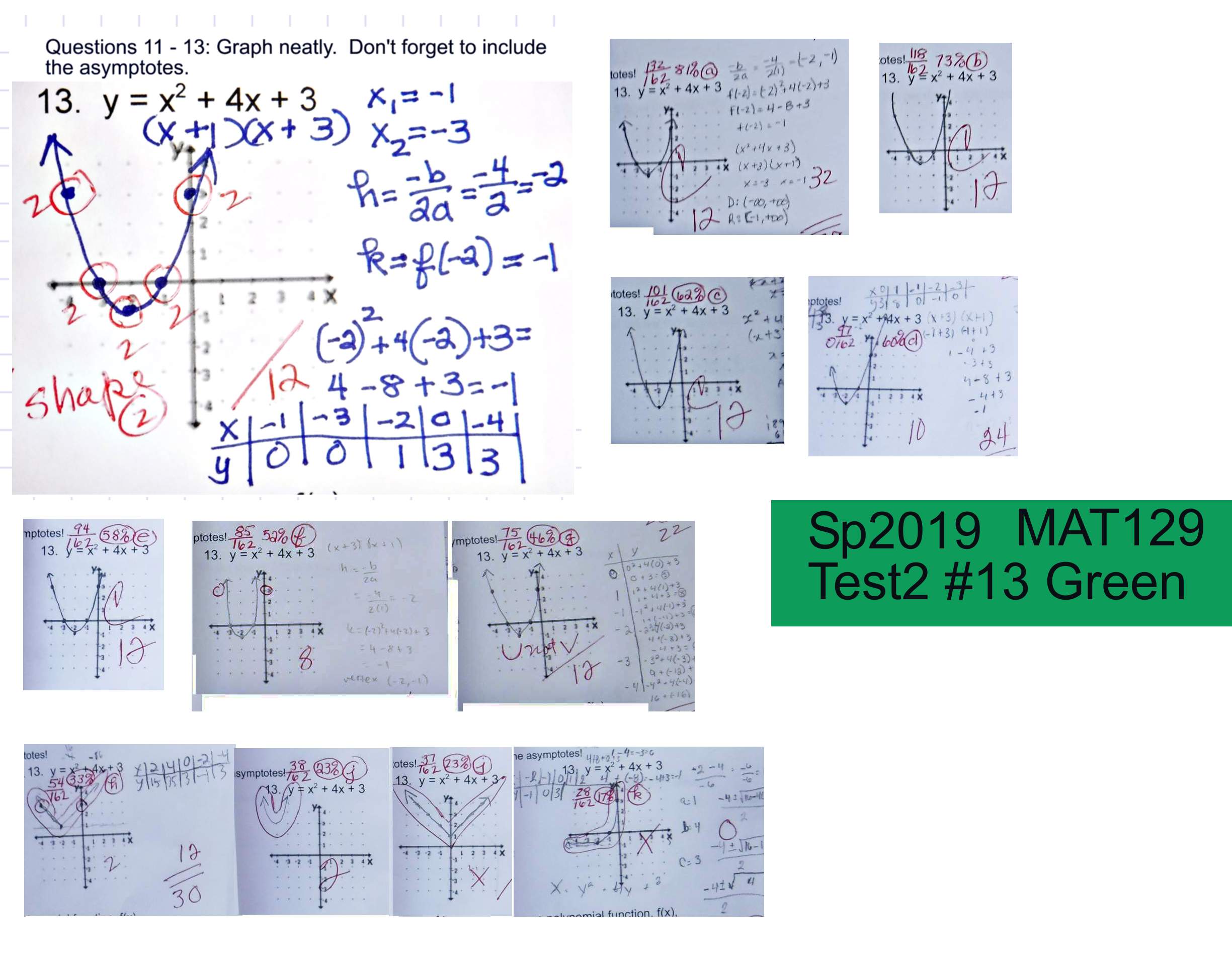 Spring 2019, Precalc Test 2, Question 13, Graph y= x² + 4x + 3